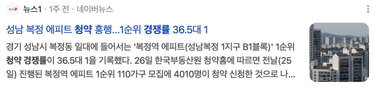 실제로 최근에 분양했던 복정 에피드의 청약의 경우 1순위 경쟁률이 36.5대 1로 나타났습니다.