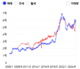 처음에는 신축이어서 선호도가 반영이 되었지만 시간이 지나면서 역전된 것을 확인할 수 있고
