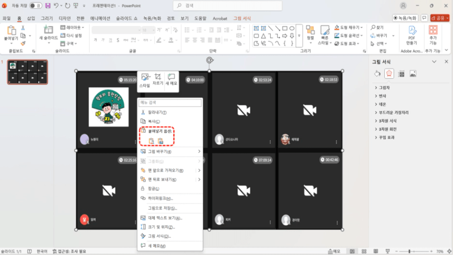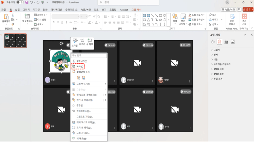 불러온 사진을 오른쪽 마우스 클릭하여 "복사"를 누르거나