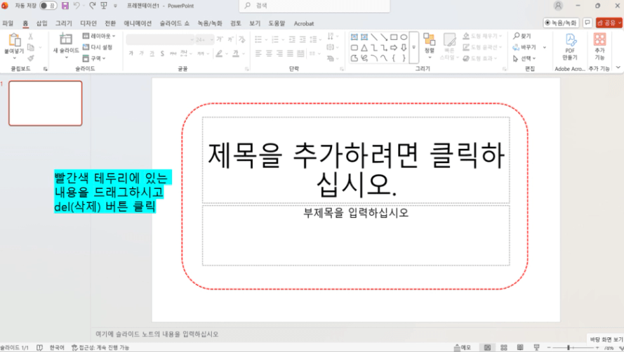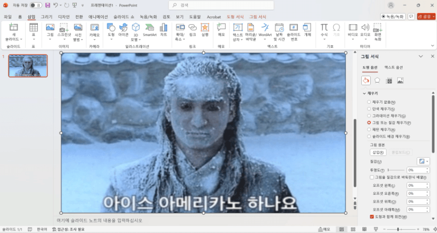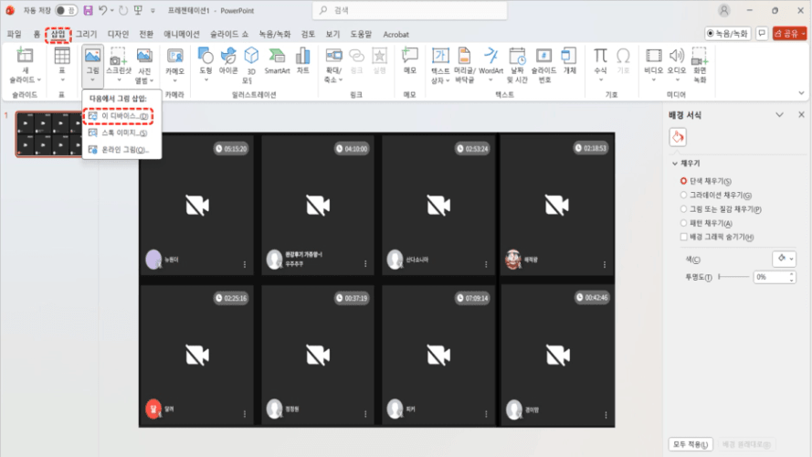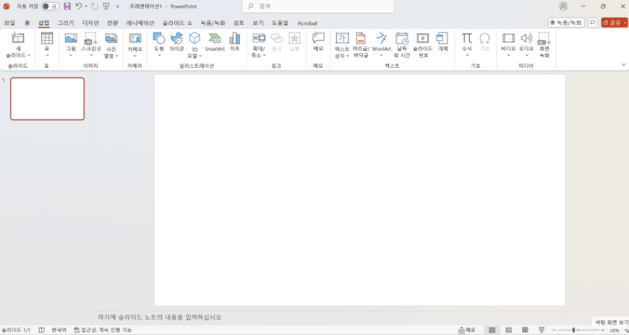 파워포인트에 하얀색 바탕만 보이도록