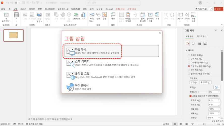 '그림 삽입' 창이 뜨면
