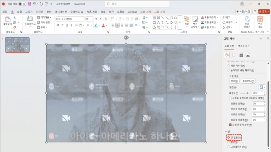 "선 없음"을 클릭하시면 됩니다.