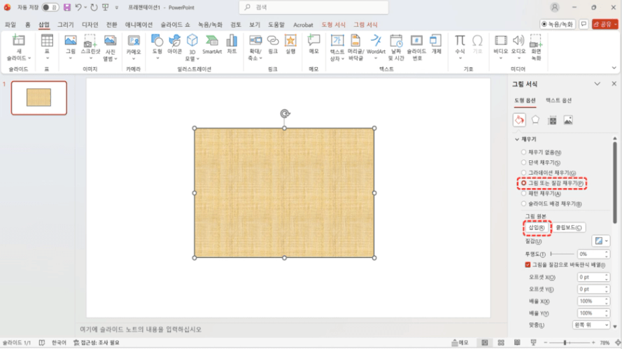 "그림 또는 질감 채우기"를 클릭하시고