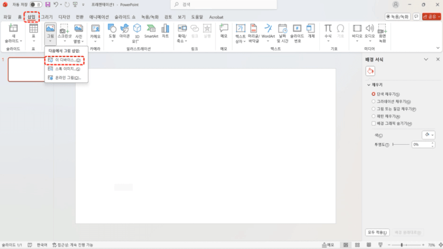 다시 "삽입" - "이 디바이스"를 클릭 후