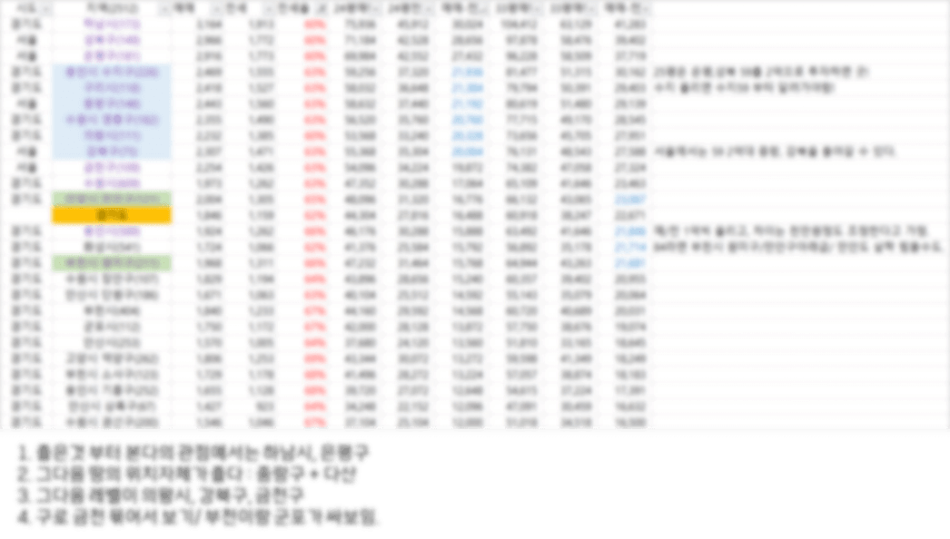 [표로 지역/단지/평수/매입가/ 투자금/ 상승률 등 정리하면서 모의 투자 복기]