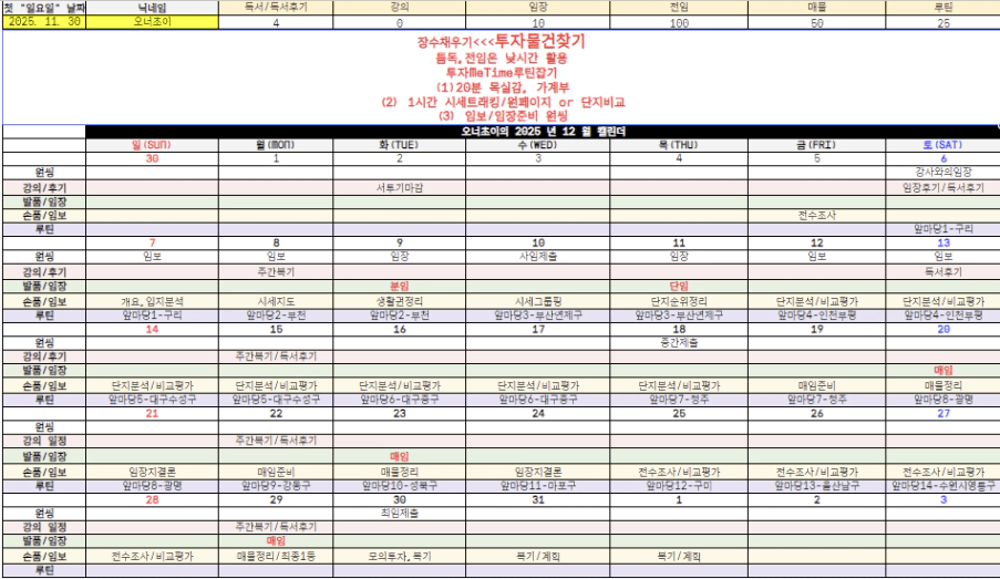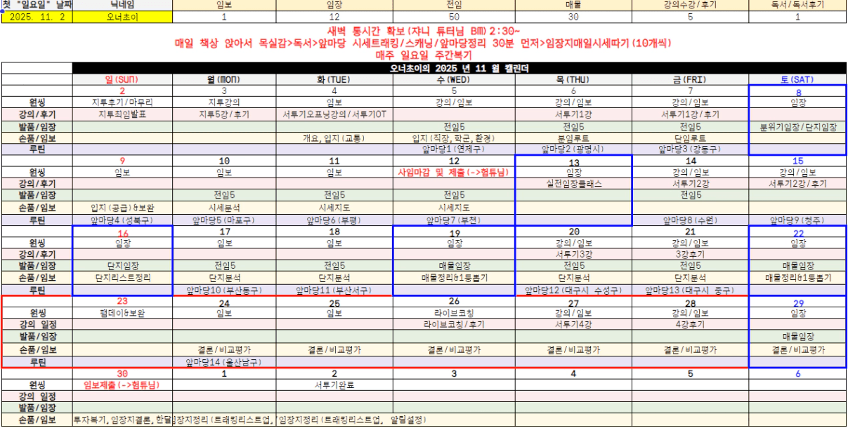 11월 1주차 계획 : 부천,구리 전수조사 / 단지 5개씩 뽑기 / 강사와의 임장 질문하기