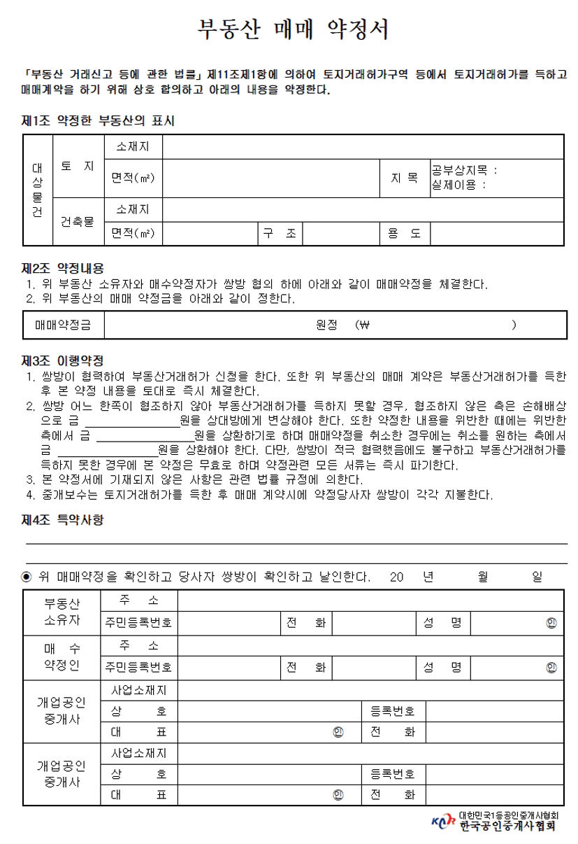 (한국공인중개사 협회에서 양식 배포)