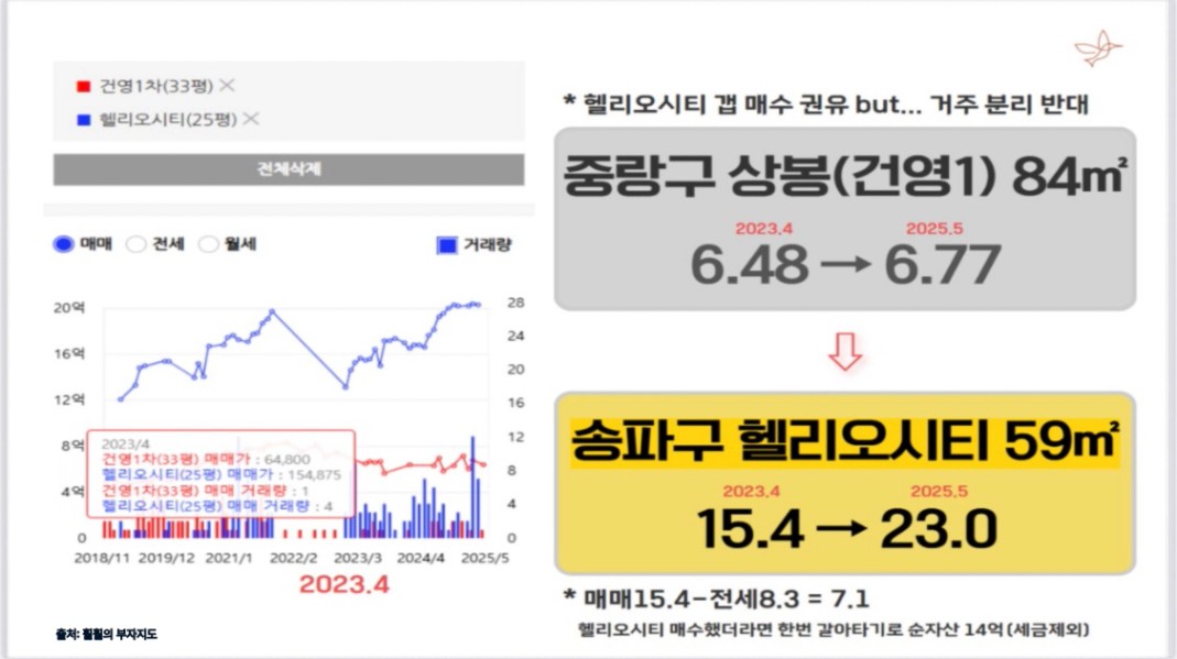 송파구 헬리오시티 25평까지 갈아탈 수도 있었다.