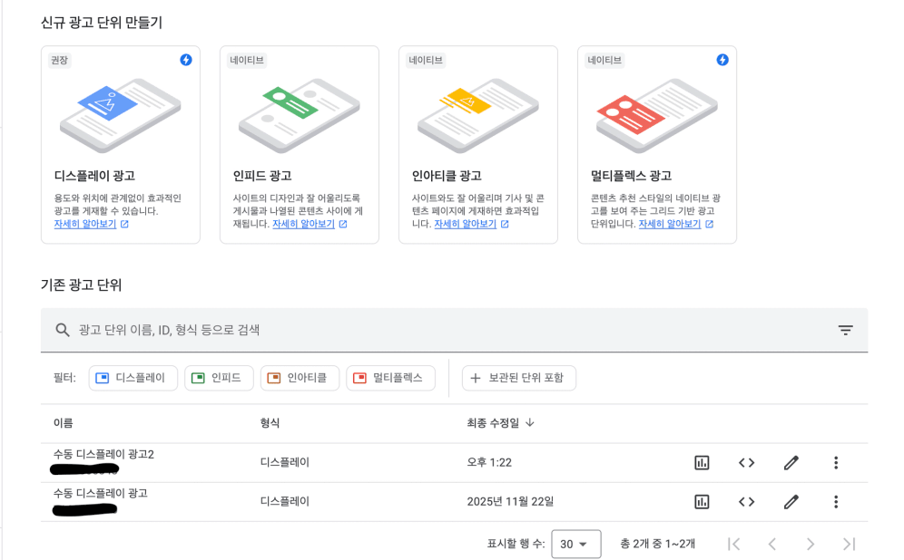 아니면 새롭게 만든 ‘수동 디스플레이 광고2’ 로