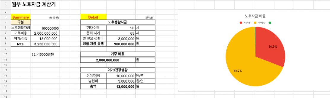 필요한 노후 자금 합계 ▶ 총 32억 5천 만원
