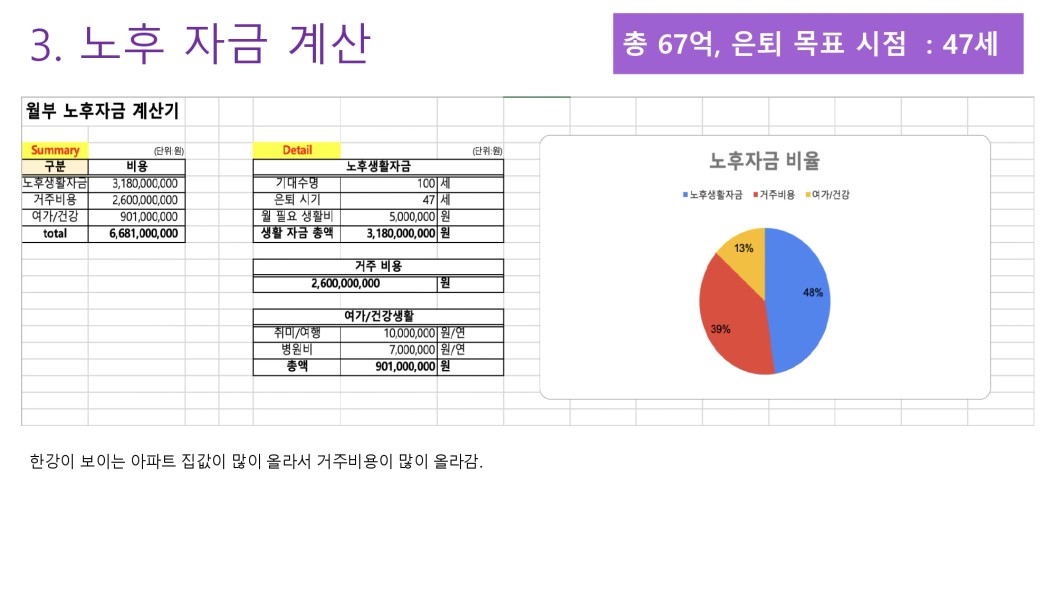 필요한 노후 자금 합계 ▶ 총 66억 8천 만원