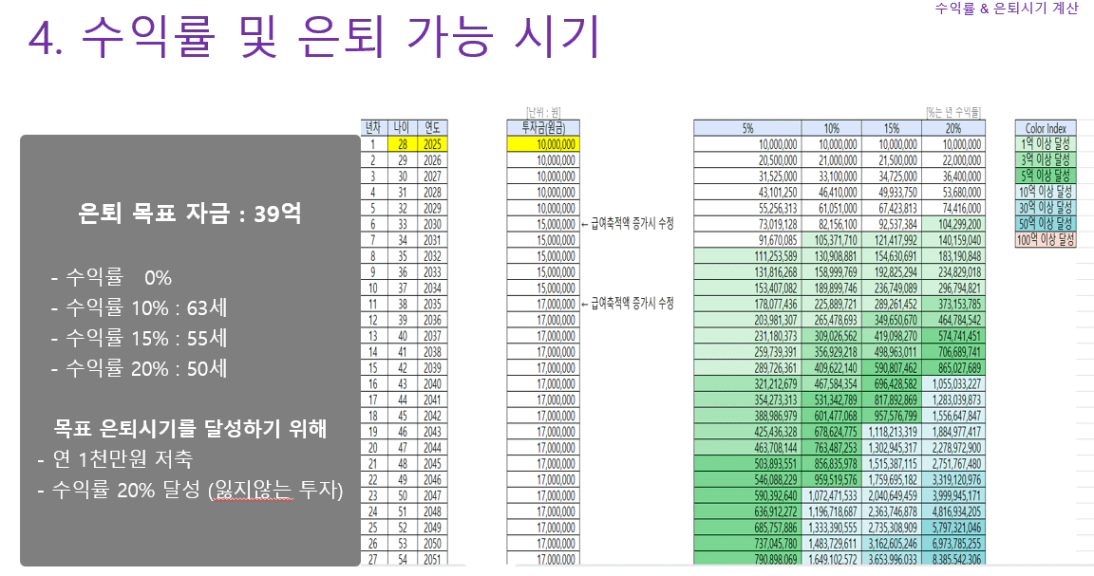 STEP4. 수익률에 따른 은퇴 가능 나이