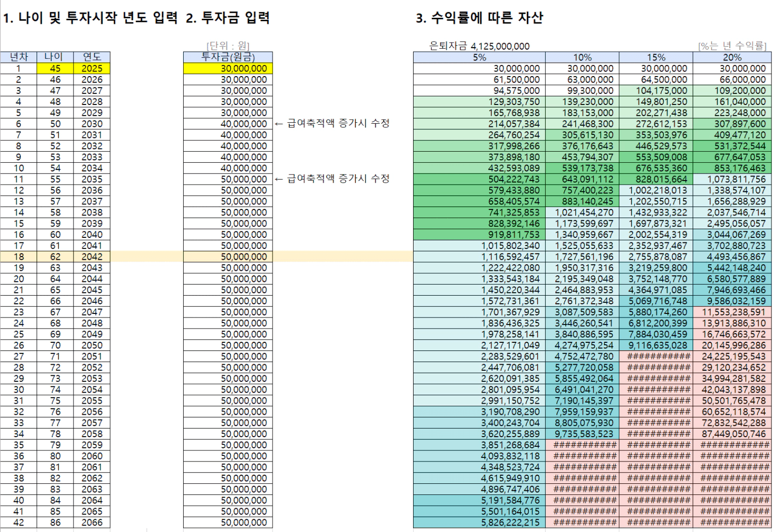 STEP4. 수익률에 따른 은퇴 가능 나이