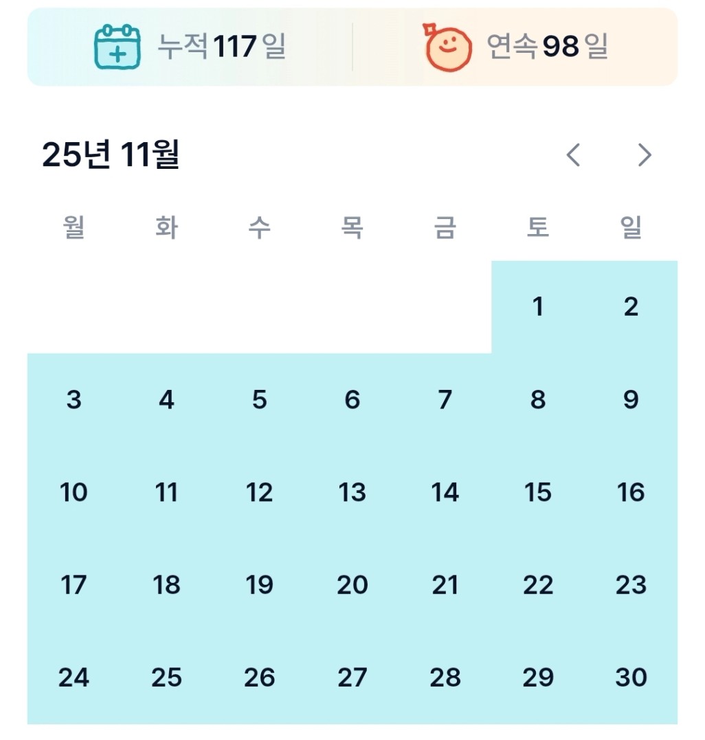 -미모 90일 챌린지 11월_20일 중 16일 성공