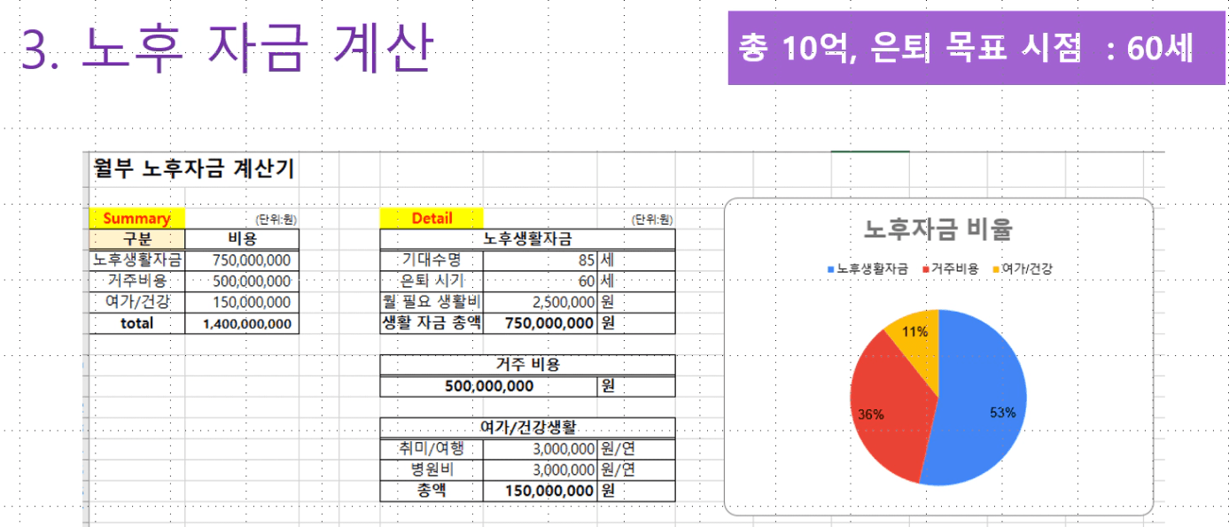 →  현재 저축가능액과 자본으로는 60세 은퇴를 못하는 것으로 예상됨.