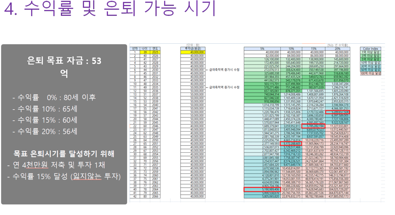 STEP4. 수익률에 따른 은퇴 가능 나이