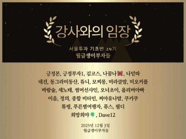 퓨스님 오늘 함께할수있어서 영광이였습니다 😊 덕분에 많이 배울 수 있었고 앞으로도 투자활동응원하겠습니다 !! 빠이팅 👍👍