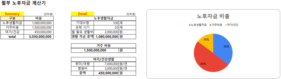 필요한 노후 자금 합계 ▶ 총 30억 3천 만원