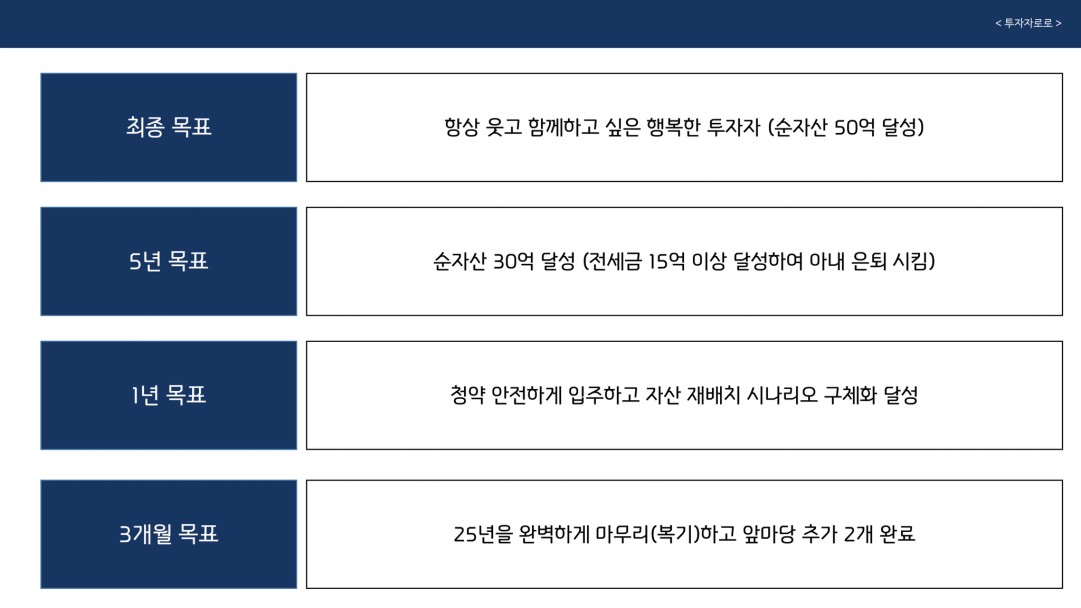 [열기 72기 2조 24y 열반기초 우리가 2끌조! 투자자로로] 4주차 과제 - 인생 목표 실행방안 구체화
