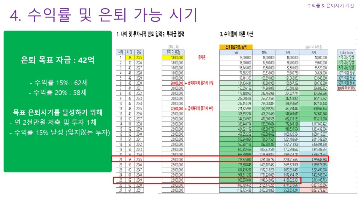 연 1천 8백 저출 및 수익율 15% 계산시, 62세 은퇴 가능