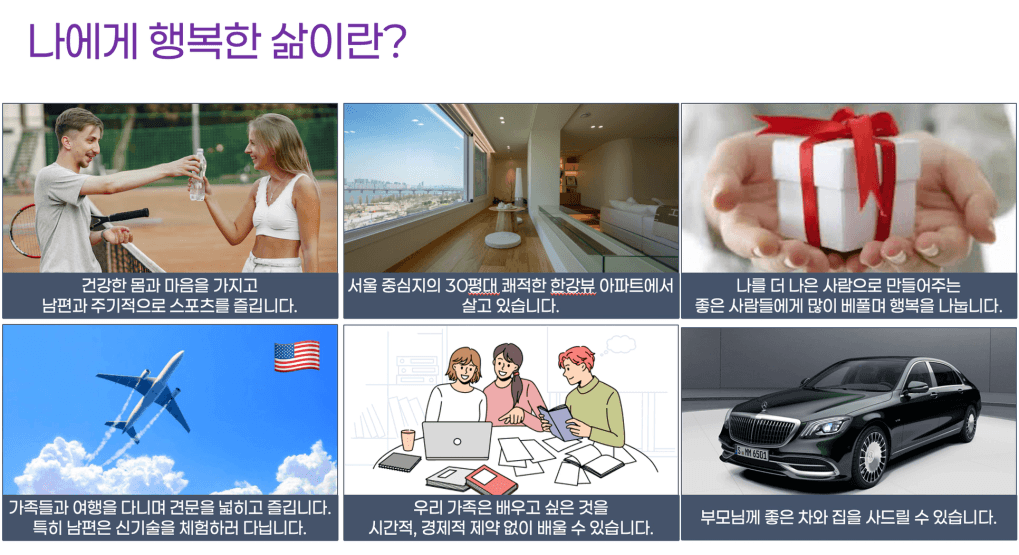 - 부모님께 좋은 차와 집을 사줄 수 있는 여유