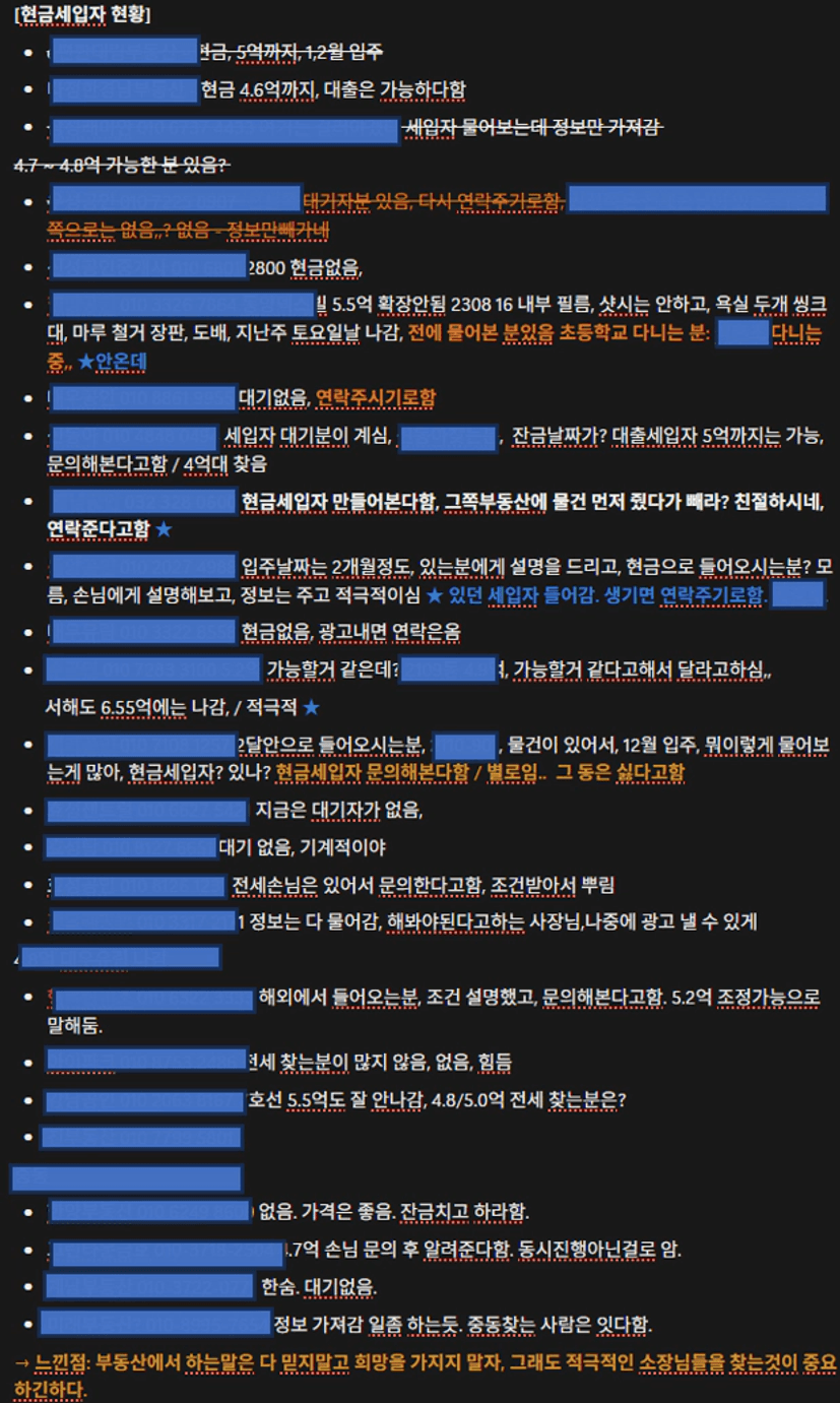 생활권 내 전세물건 갯수와 가격을 매일매일 파악했고, 전세입자 컨셉으로 매임까지 진행하면서