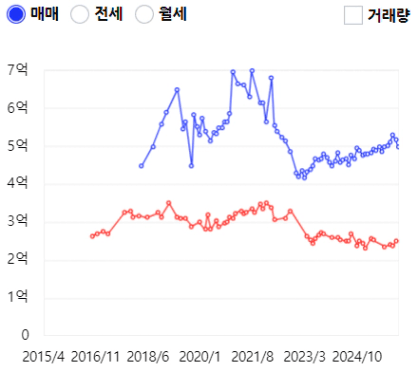 지인의 장기임대 주택 주변 단지 84'(빨간색)