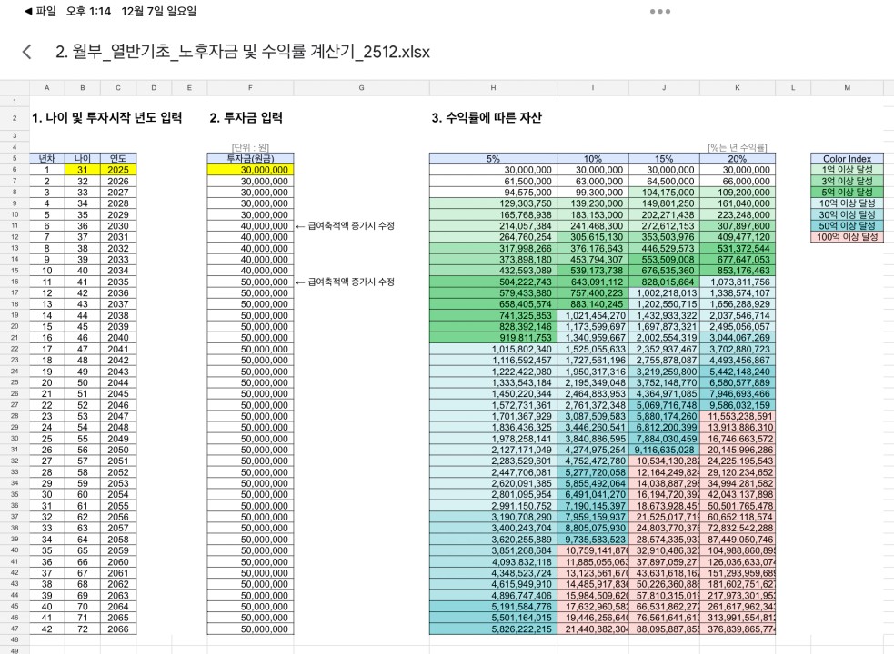 STEP4. 수익률에 따른 은퇴 가능 나이