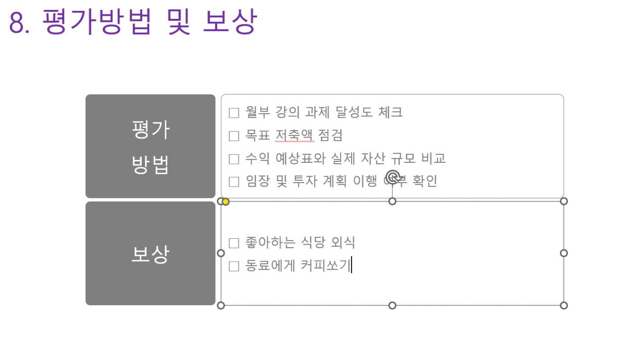 비전보드 완성~~~~ 오오오~~~~ 보상이 동료에게 커피는 쏘는 것이라니... 보상 역시 베푸는 마음 ㅎㅎㅎ