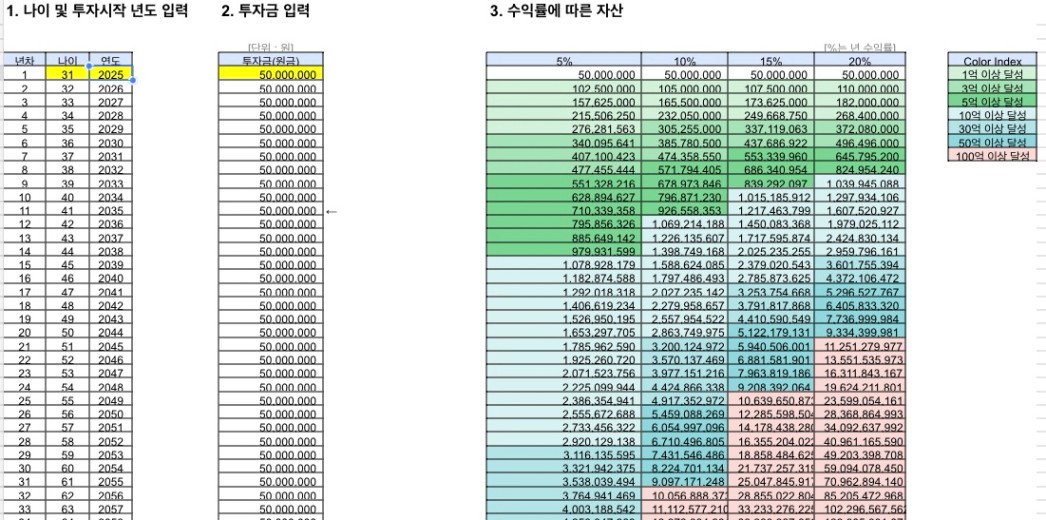 목표 금액 48억 (현재 나이 31세, 연저축액 5000만원에서 시작)