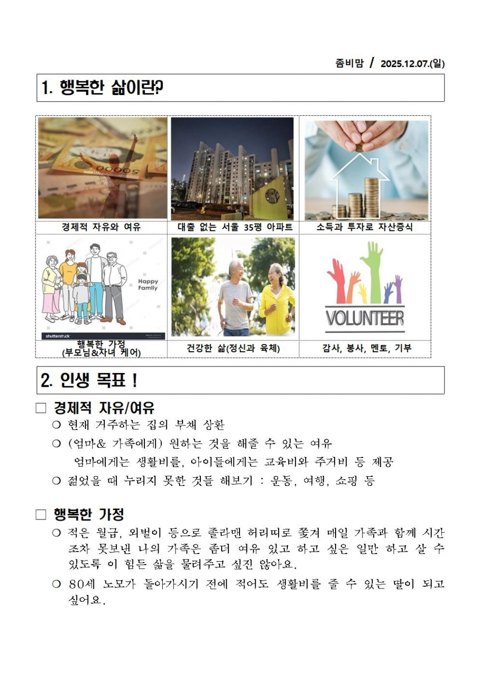 좀비맘님 과제제출!!!! 비전보드 작성하시느라 너무 고생하셨습니다!! 그래도 작성하시면서 좀비맘님에게 의미 있는 시간이셨을것 같아요. 비전보드가 알려주는 나침반의 방향대로 좀비맘님만의 멋진 인생 로드맵 그려보시길 바래요!!! 12월 한달 화이팅입니다!!^^