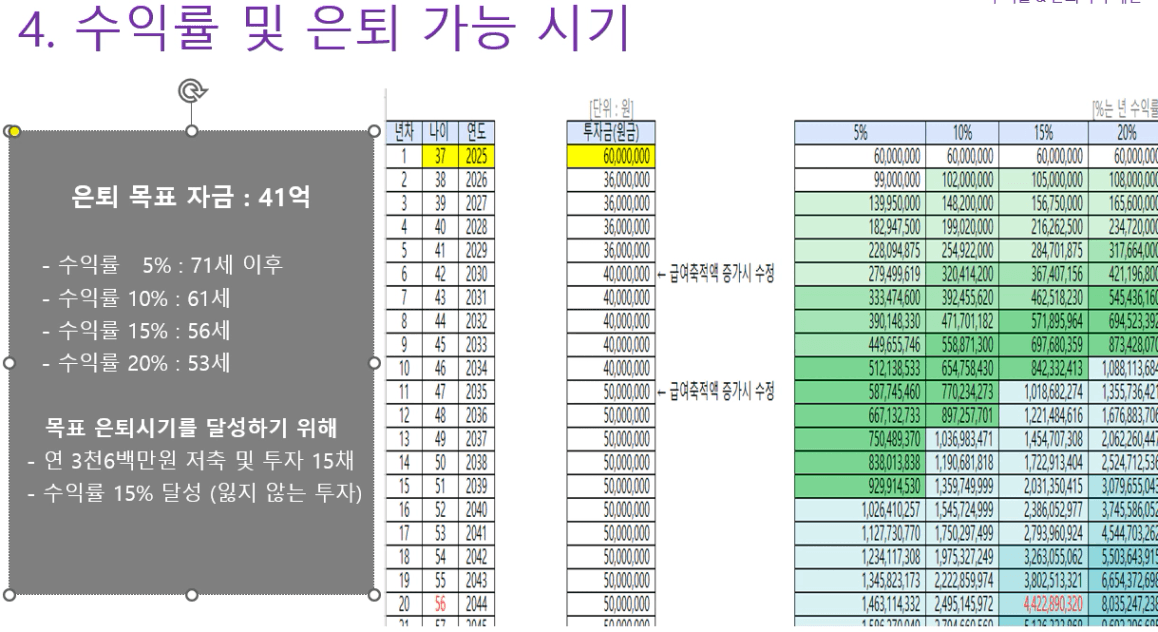 STEP4. 수익률에 따른 은퇴 가능 나이