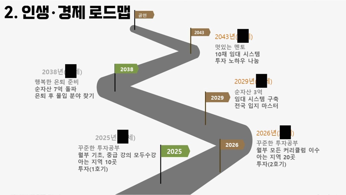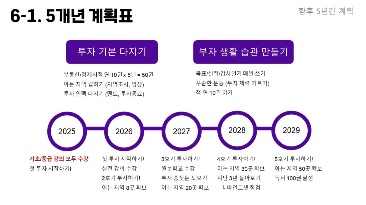비전보드 실현을 위해 5년 단위로 20년 계획을 세워봅시다. (2025/ 2030/ 2035/ 2040/ 2045년)