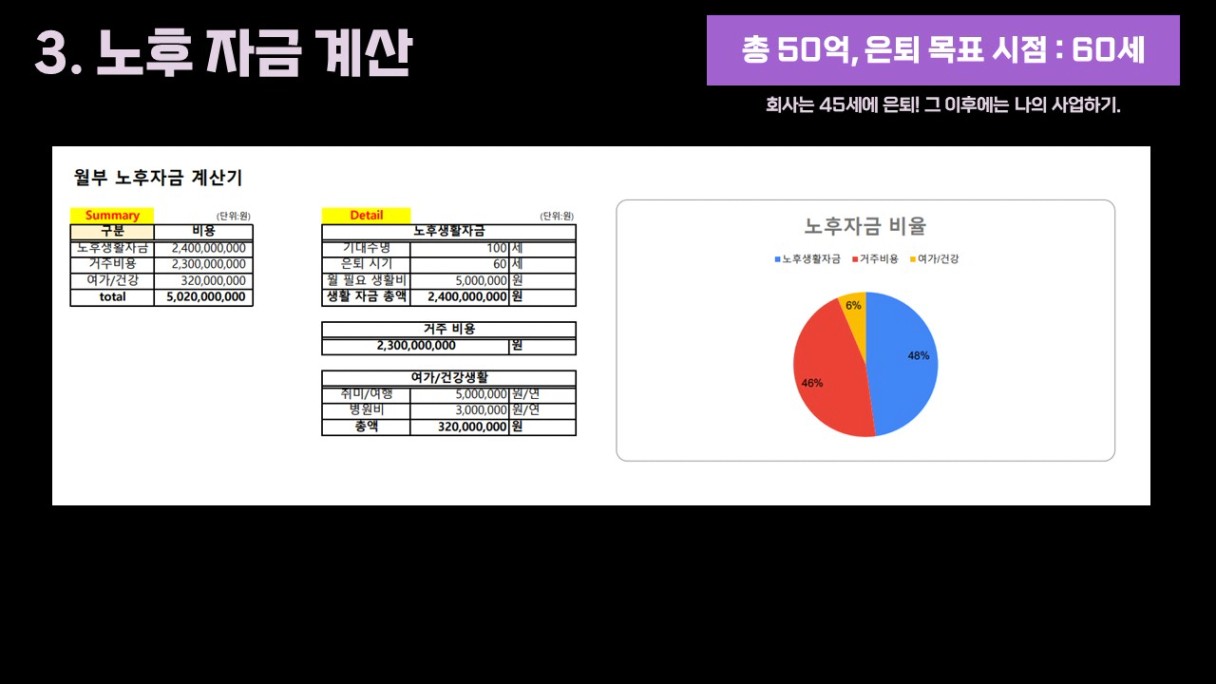 필요한 노후 자금 합계 ▶ 총 50억 2천 만원