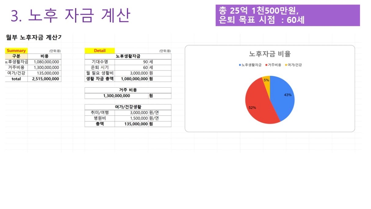 필요한 노후 자금 합계 ▶ 총 25억 1천 500만원