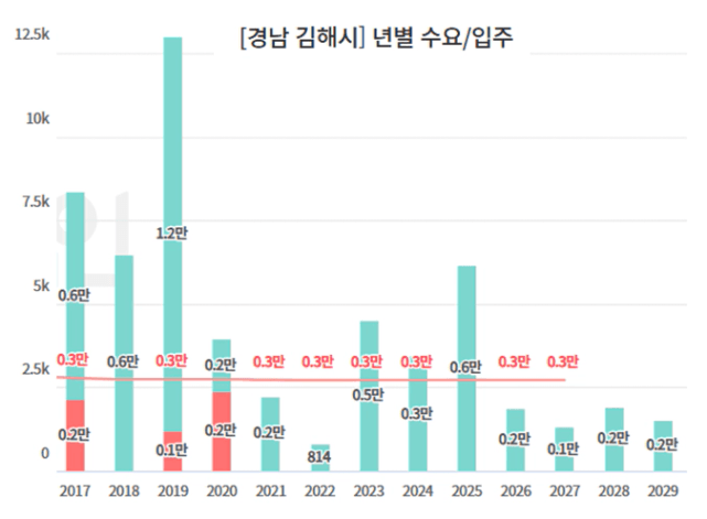 김해의 전체 공급은 2010년대 후반 23~25년 대규모 공급이 이어졌고,