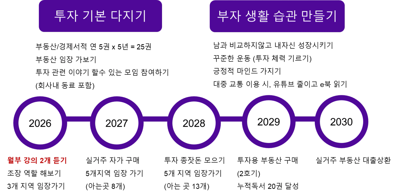 비전보드 실현을 위해 5년 단위로 20년 계획을 세워봅시다. (2025/ 2030/ 2035/ 2040/ 2045년)