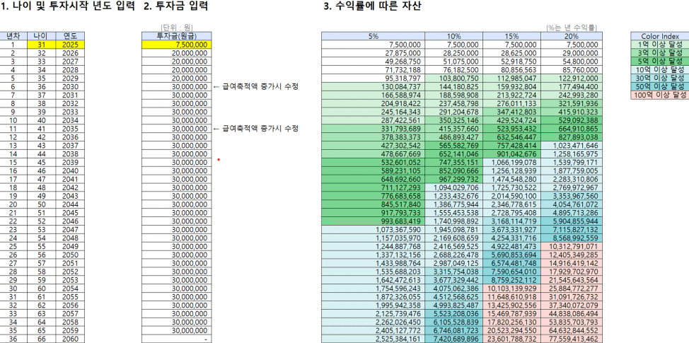 목표 금액 27.5억 (현재 나이 31세, 연저축액 750만원에서 시작)