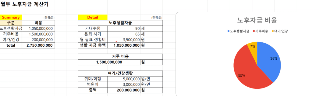 꿈을 실현하기 위해 필요한 노후 자금은 얼마인지 예산을 계산해보세요.