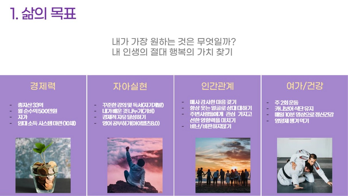 작성하신 내용 멋지지만 부리곰님의 편지를 보고 바로 벤치마킹 하신 실행력이 더욱 돋보이는 비전보드라고 생각됩니다. 저도 먹부기님을 벤치마킹해서 열심히 따라가보겠습니다 ㅎㅎ