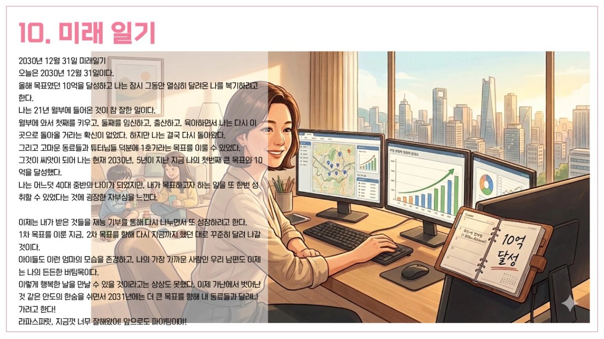 우아.. 촘촘하고 빼곡한 라파님 계획과 자세한 방법에 감탄하고 갑니당 너무 멋져요 !! 꼭 이루실 수 있을거에요!! 화이팅~~~~