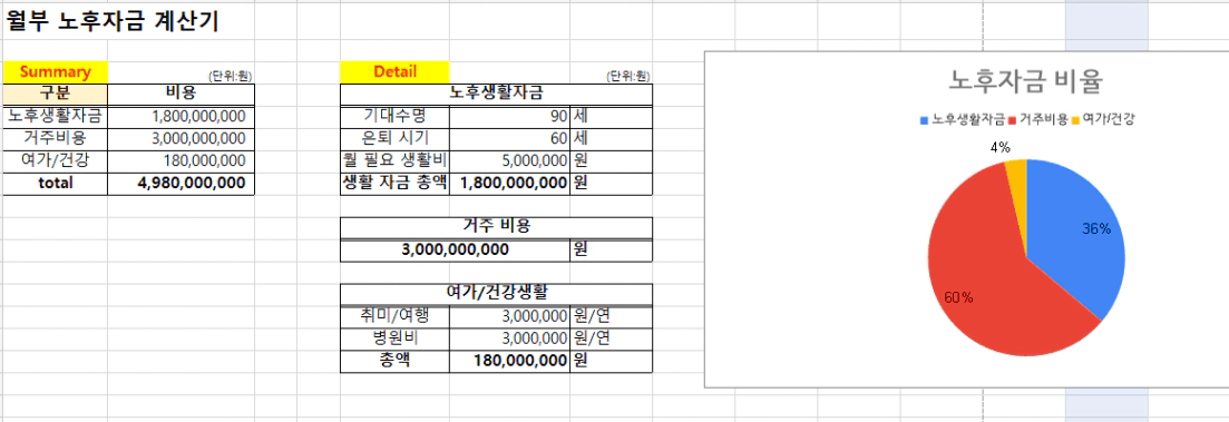 필요한 노후 자금 합계 ▶ 총 49억 8천 만원