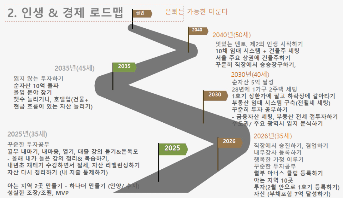 비전보드 실현을 위해 5년 단위로 20년 계획을 세워봅시다. (2025/ 2030/ 2035/ 2040/ 2045년)