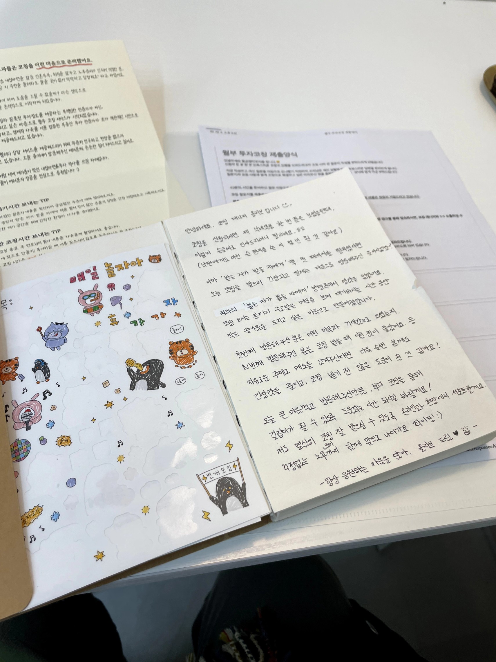 혹시나 까먹을까 싶어서 급하게 프린트 해왔는데 두장 있으니 맘이 더 든든.