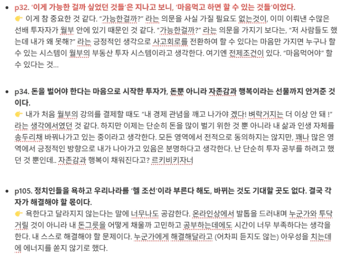 책을 읽으며 기억하고 싶은 ‘책 속 문구’가 있다면 페이지수와 함께 적어보세요