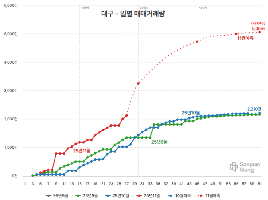 대구의 거래량 증가는 확실한 반등의 신호탄을 이야기하는 듯합니다. 최근 대구 쪽 큐레이팅을 3건을 진행했는데 현장 분위기가 불타오르는 게 느껴질 정도이기 때문입니다.