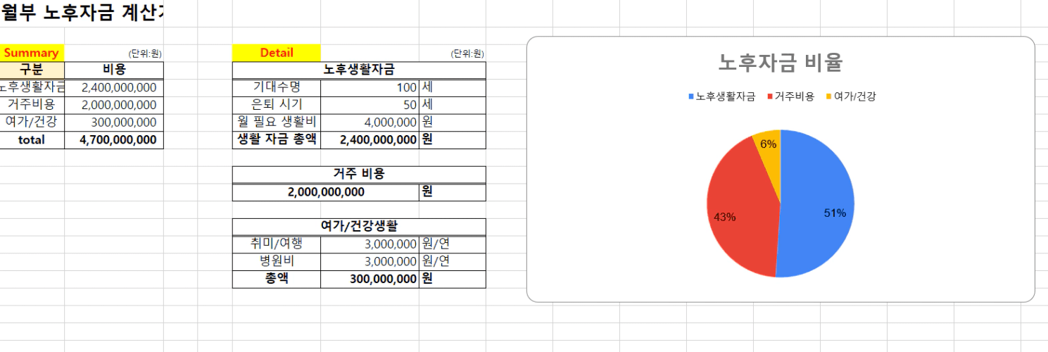 필요한 노후 자금 합계 ▶ 총 47억 만원
