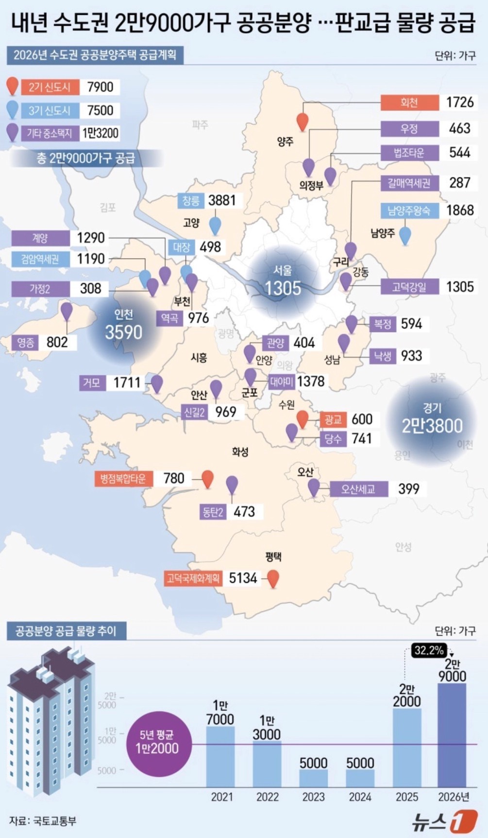 공급의 95% 이상이 경기와 인천에 집중됩니다.