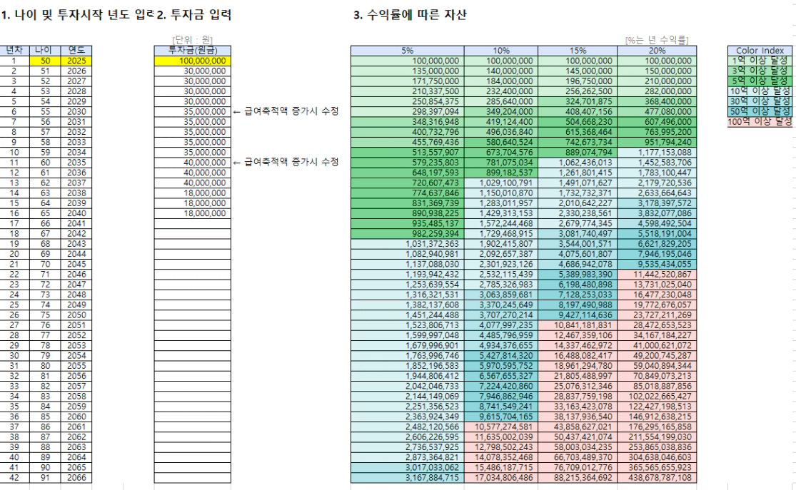 STEP4. 수익률에 따른 은퇴 가능 나이