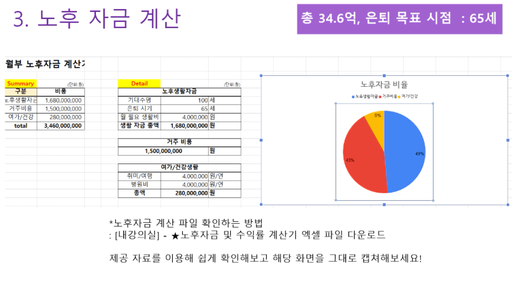 필요한 노후 자금 합계 ▶ 총 34억 6천 만원